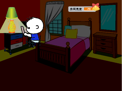 舞台背景应该能够根据传感器板上亮度传感器的数值而改变亮度。