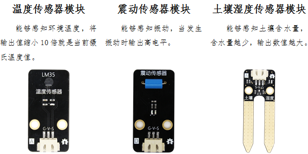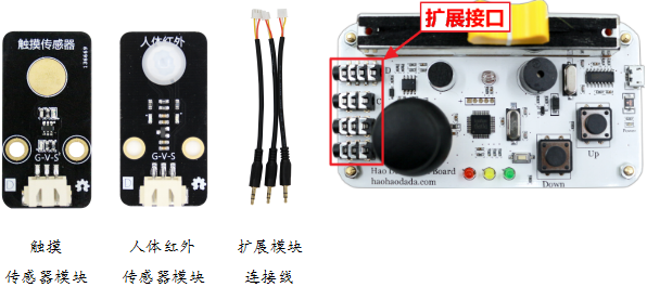 除了触摸传感器和人体红外传感器模块,好好搭搭Scratch传感器板还提供有以下扩展模块: