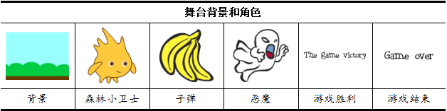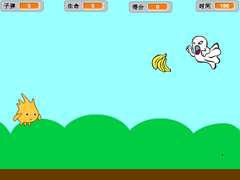 本课范例程序的“子弹”就是“香蕉”,它是森林小卫士进攻的武器。