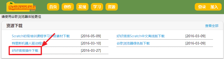 “好好搭搭传感器板”要在电脑上正常使用,必须先下载、安装“好好搭搭”插件。