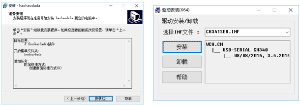 插件程序安装完成以后,还会打开如上右图所示的“驱动安装”对话框,安装“好好搭搭”设备的驱动程序。单击“安装”按钮开始安装。
