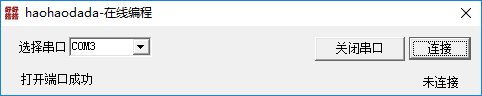 一般情况下,“haohaodada在线编程”会根据当前计算机的串口情况,自动选择连接传感器板的串口,不需要人工设置。因此进入“haohaodada在线编程”程序窗口后,只要单击“连接”按钮,就可以将传感器板与计算机连接起来。需要注意的是,在传感器板使用过程中,“haohaodada在线编程”程序窗口不能关闭。