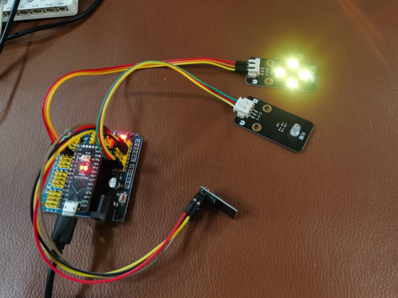好搭酷-nano V1.1版本保留了V1.0原有的电源灯并命名为“ON”,在添加了一个板载LED灯“L”,连接D13引脚,可通过控制D13引脚输出高低电平控制LED灯。