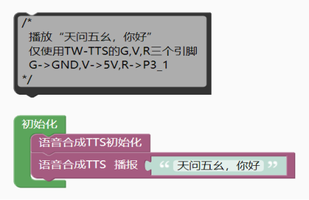 - tts.tts_play("播放“天问五幺,你好”");