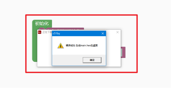 编译成功会有弹出窗口,生成hex文件并自动放在电脑桌面