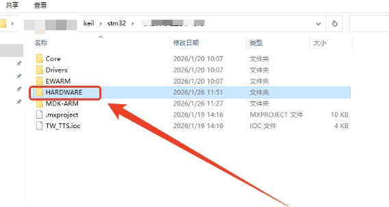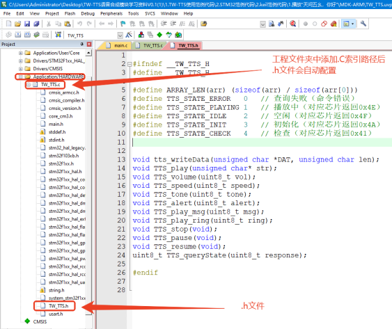 将TW-TTS的库文件(含.c文件和.h文件)复制到需要添加的工程文件夹中