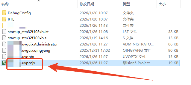 然后打开MDK工程文件夹中的 .uvprojx文件