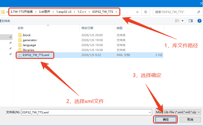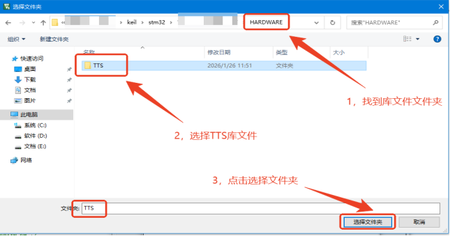 找到已复制到工程库中的TTS库文件夹并选择