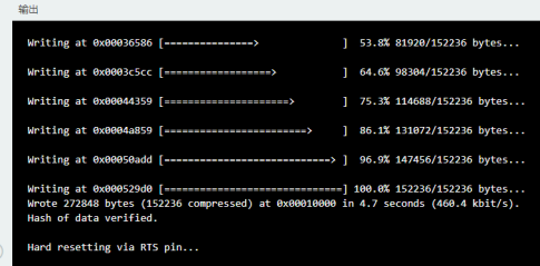 再点击“上传”即可通过编译下载程序到主板上,下载完成后ESP32C3会自动重启系统。
